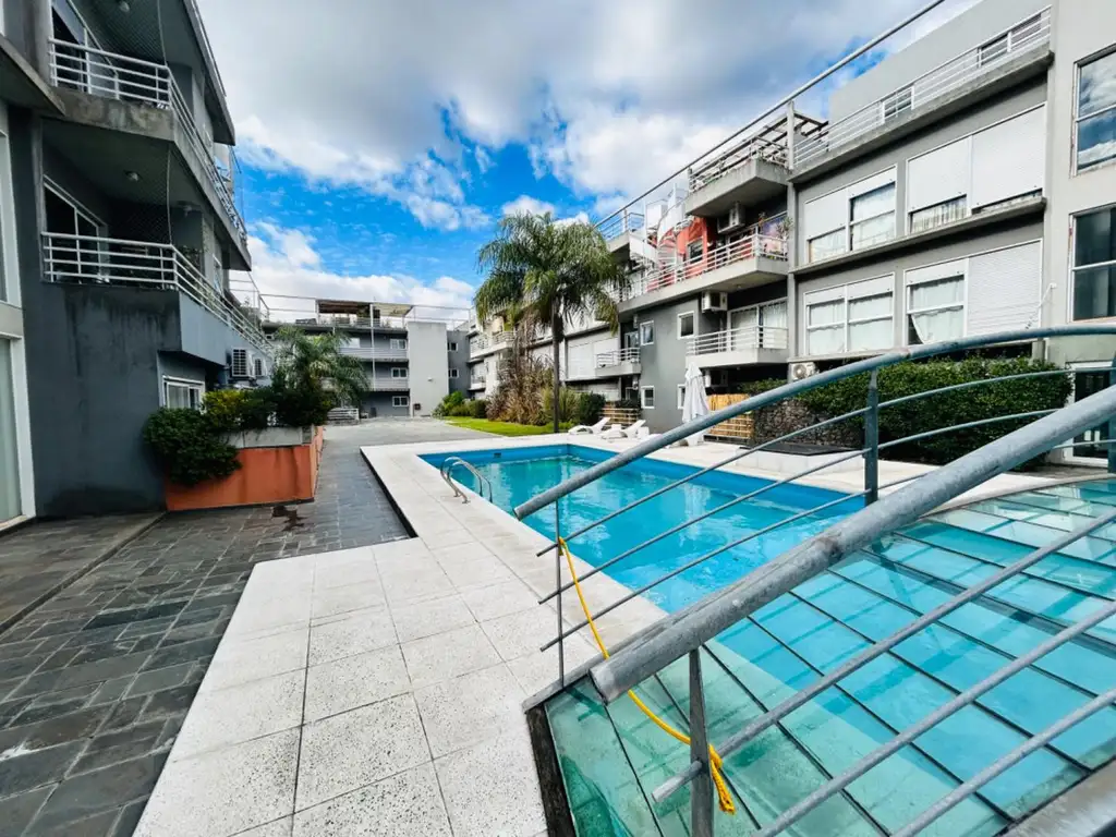 Complejo con gran recepcion con ventanales vista a la pileta, Sum con quincho y parrilla, gym, estacionamientos de cortesia.