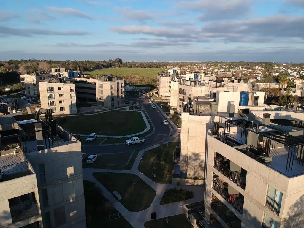 Descripción de la unidad: Segundo piso, depto B.Ingreso al departamento por el estar-comedor diario con salida a balcon. Cocina integrada al ambiente principal por barra desayunadora. Baño principal. Ingreso a pasillo intimo con distribución a baño principal, y a los dos dormitorios, ambos con placares empotrados y uno de ellos con baño en suite.