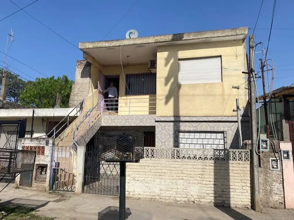 Cocina comedor 3,55 x 8,7 piso de cerámica esmaltada con deterioros, mesada de granito sobre estructura de hierro, instalación para agua fría y caliente, alzada azulejo color, dos ventanas metálicas corredizas con cortinas de pvc y reja,