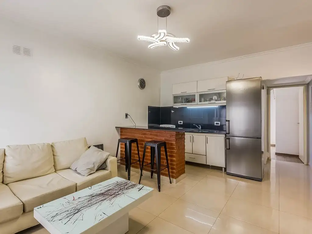 El departamento posee un diseño moderno y funcional. Cocina integrada al living comedor mediante una barra de mármol negro, espacio cómodo y bien iluminado. El patio con techo corredizo y excelente ventilación se utiliza actualmente como lavadero, pero tiene potencial para sumar una parrilla y disfrutar del aire libre.