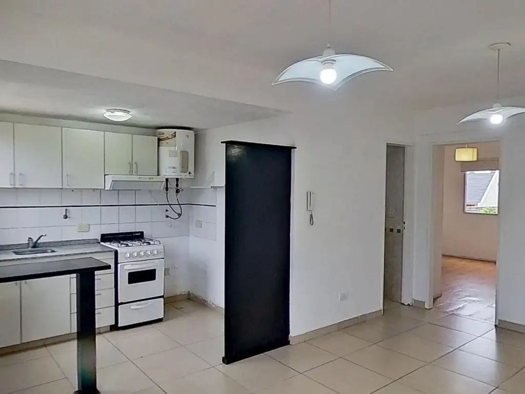 Cocina completa equipada con barra desayunadora, bajo mesada, alacena y cocina incorporada.