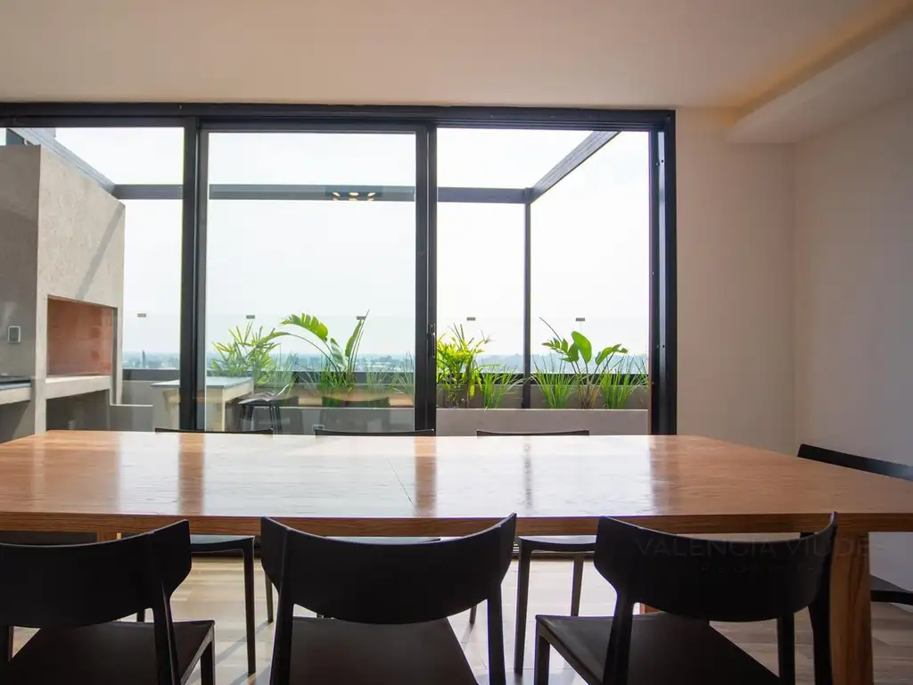 Al ingresar al departamento encontramos la cocina integrada con la mesada de silestone en forma de "L", equipada con bacha de Acero Johnson, horno eléctrico, anafe a gas de cuatro hornallas, alacena superior y muebles bajo mesada con herrajes "push". Cuenta además con muy buena orientación, lo que le aporta luz y vida al living-comedor, generando un espacio abierto y agradable que se conecta directamente con el balcón.