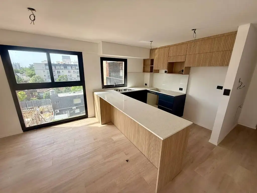 La unidad cuenta con un amplio living-comedor integrado, con salida al balcón que aporta gran luminosidad. La cocina esta equipada con muebles bajo mesada y alacenas, y espacio para comedor diario.