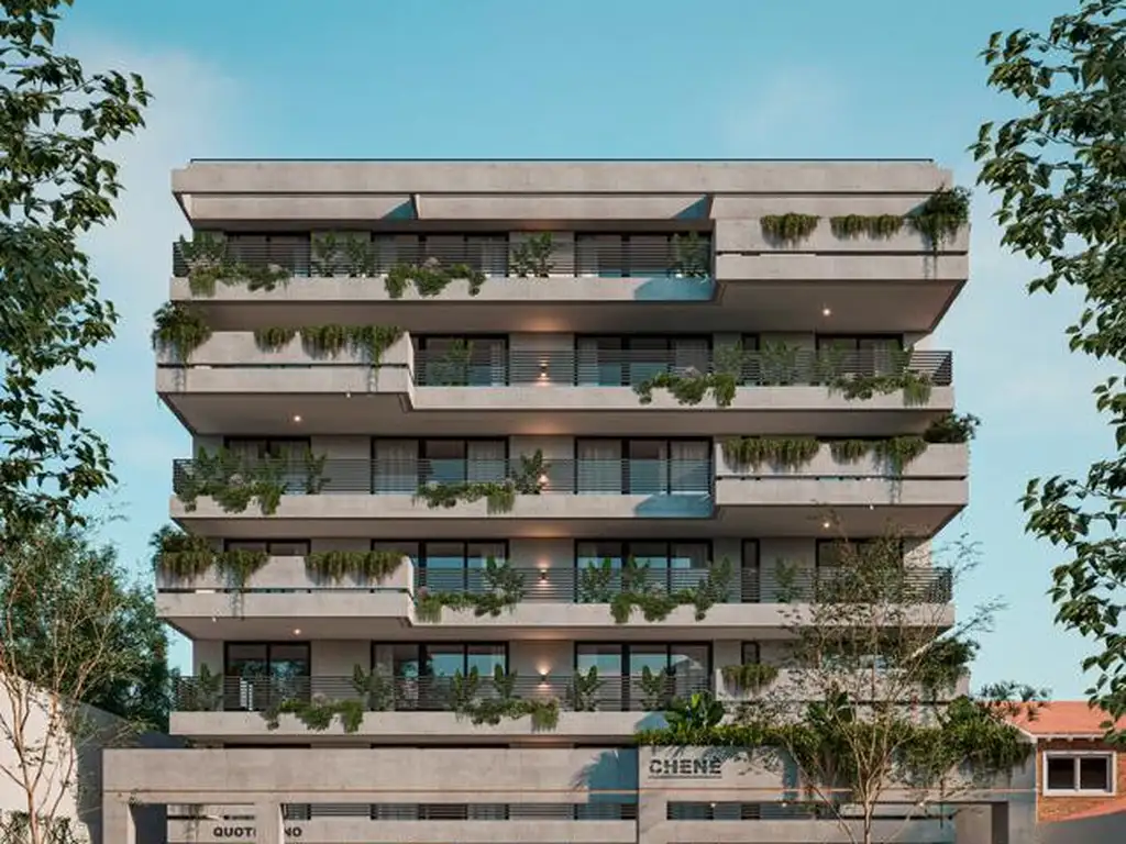 La unidad cuenta con un living con balcón, cocina integrada con muebles bajo mesada y alacena. Anafe y horno eléctrico. Barra desayunador. Lavadero. Dos dormitorios con placard, el principal con salida al balcón. Ante baño y baño completo.