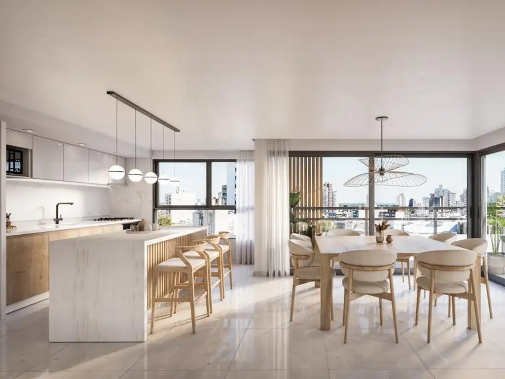 La unidad se desarrolla en un Séptimo piso al frente. Cuenta con un amplio living comedor con amplio balcón esquinero al frente, cocina integrada, con anafe y horno eléctrico. Isla.