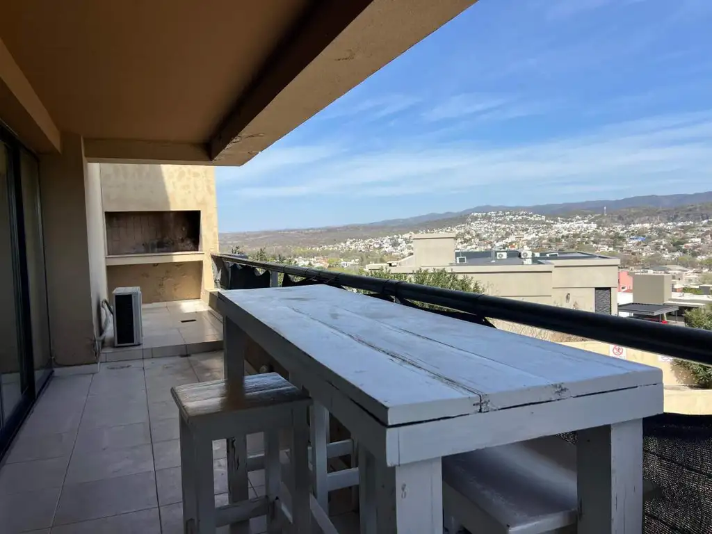 Gran balcón con asador y vista panorámica integrado al living por puertas ventanas