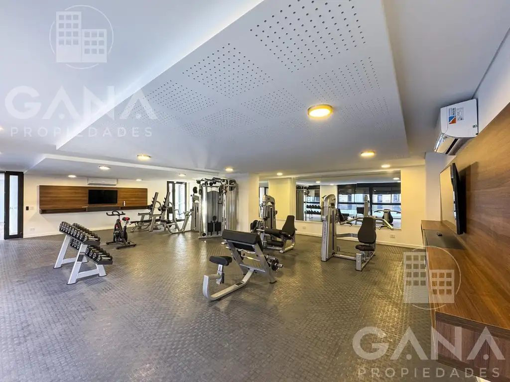 Gimnasio de grandes dimensiones, con baños propios, ideal para entrenar sin salir de casa.