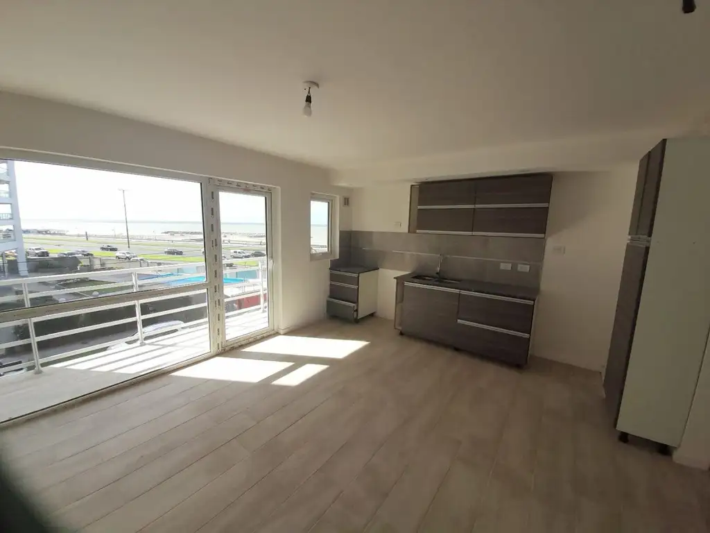 1 ambiente a la calle con cocina integrada, baño completo y balcón a la calle con vista al mar