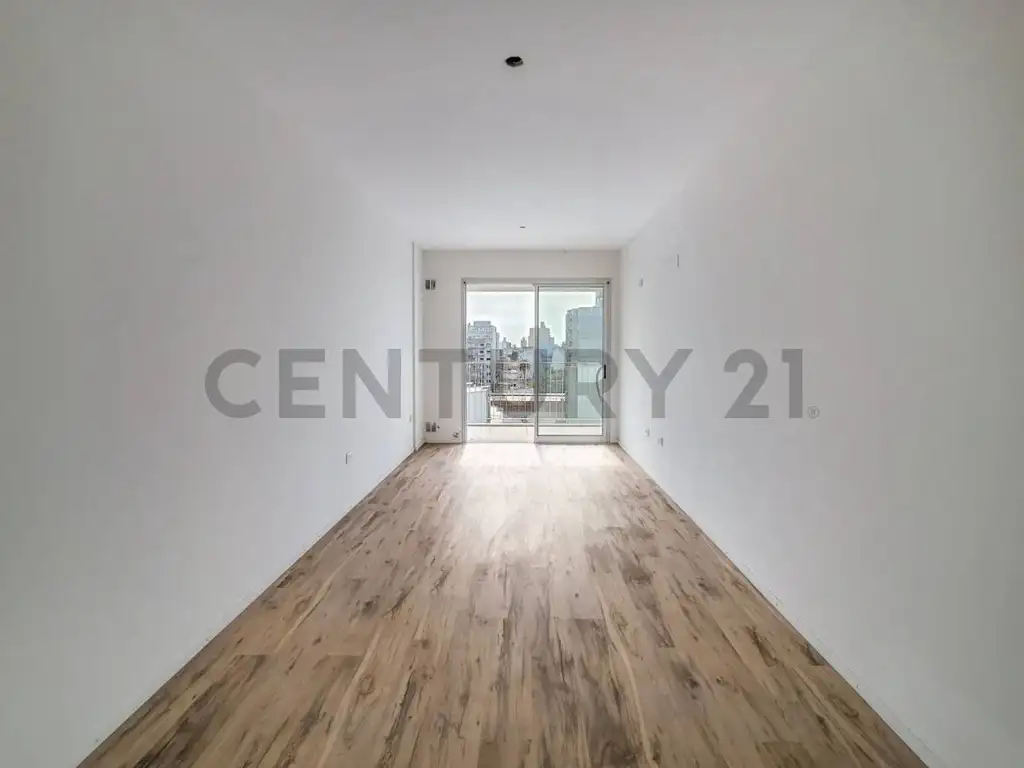 El espacio está perfectamente distribuido, con un baño completo y una cocina equipada con muebles bajo mesada y horno, integrada mediante una práctica barra desayunadora al living-comedor, creando un ambiente amplio y luminoso.