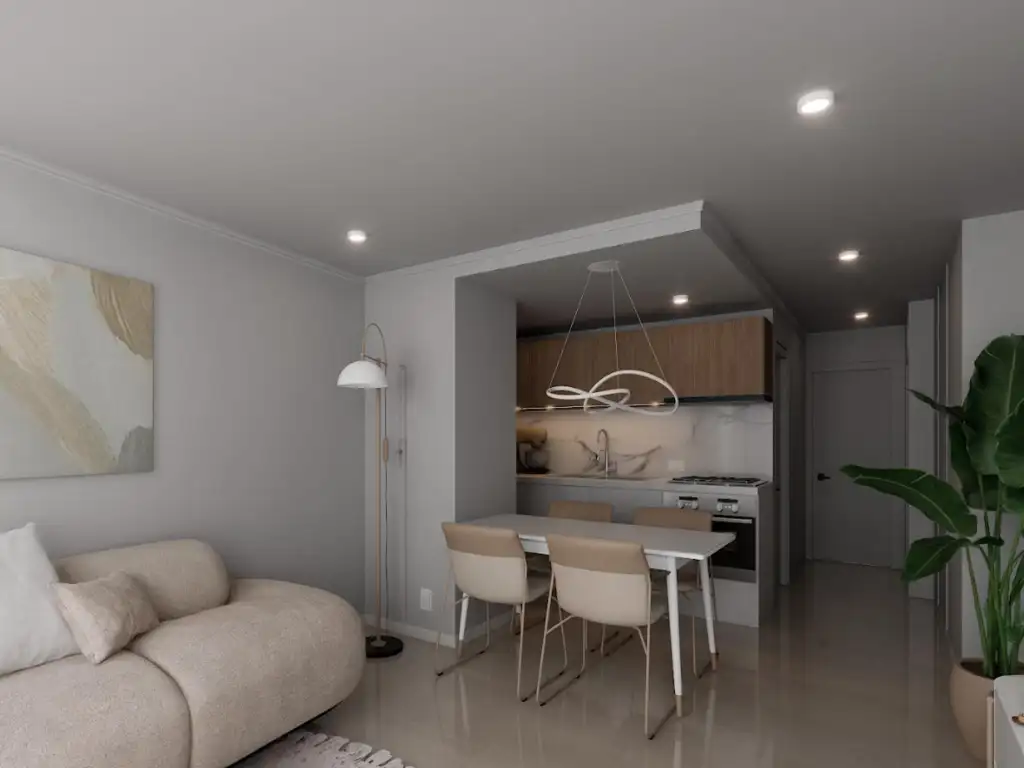 _ El mismo posee cocina equipada con muebles sobre y bajo mesada integrada al living comedor, un dormitorio con placard empotrado y un baño completo. Amplio y luminoso, cuenta con balcón y pre instalación equipo de aire acondicionado.