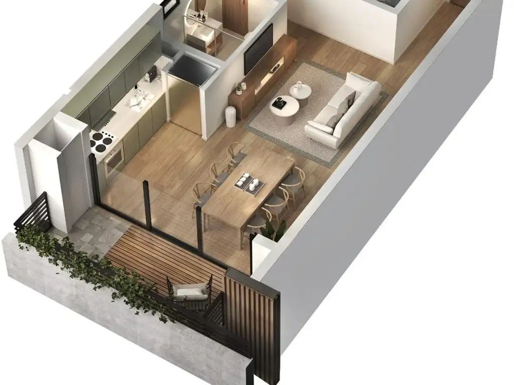 En la planta baja se proyecta un local comercial de 50 m², además de 9 cocheras descubiertas y una cochera exclusiva asignada al departamento del mismo nivel, todas concebidas como unidades complementarias.