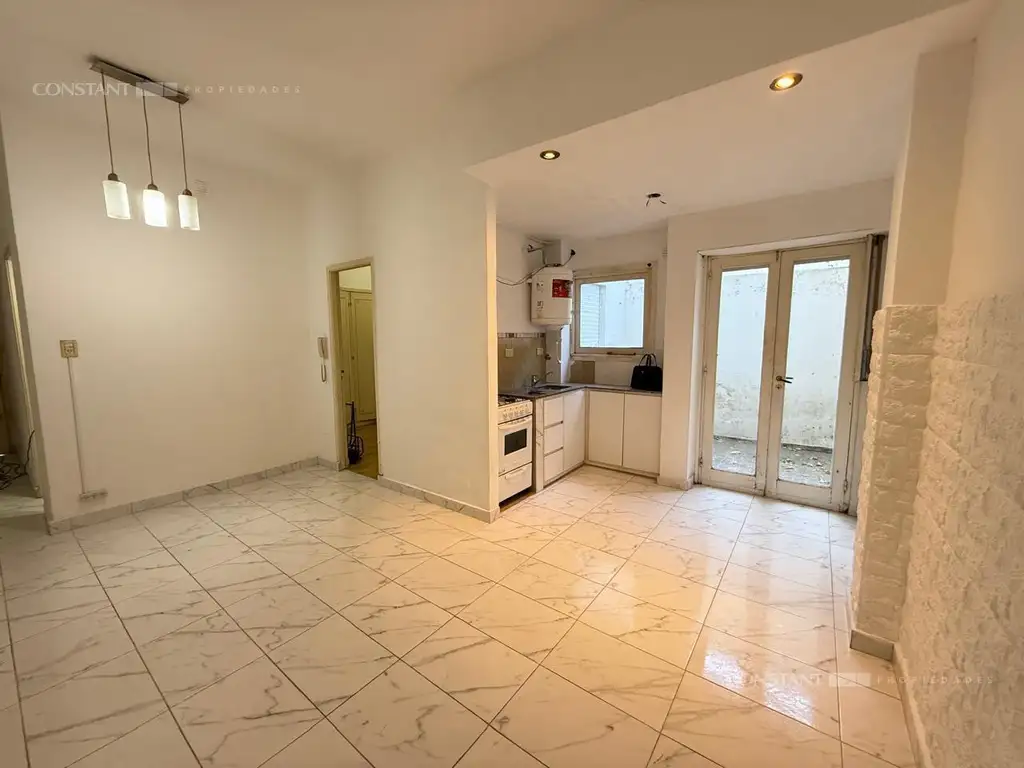 Cuenta con un dormitorio cómodo con buen placard y un estar amplio con salida al patio y cocina integrada. Baño completo.