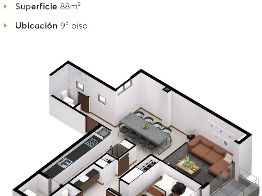 En inmejorable ubicación, cerca de Plaza Malvinas y Moreno, ofrecemos departamento a estrenar ( con entrega en diciembre de 2026). Situado en 9o piso al frente de dos dormitorios con 88,4 mts2 de superficie. Las fotos son orientativas de una unidad similar ya terminada en otro edificio.