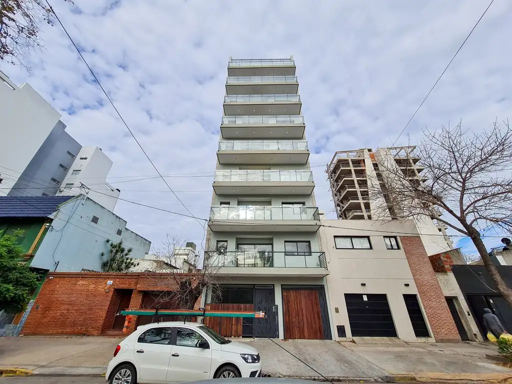 Tiene un baño completo, una cocina completa con muebles bajo mesada y alacena (se entrega con cocina, pre- instalación de aire acondicionado, calefacción por tiro balanceado, agua caliente central. Cerramientos de aluminio DVH, Pisos de Porcelanato y en los dormitorios son de madera, griferías FV, Sanitarios Roca Mónaco. Disponible el primero y el séptimo piso.