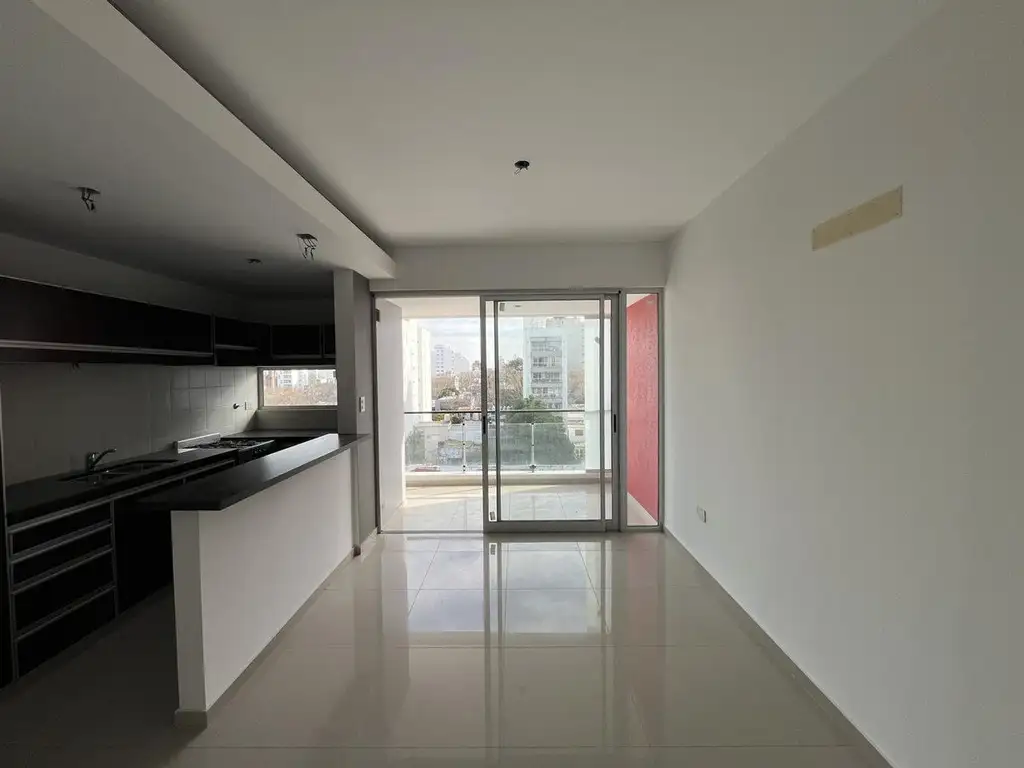 Cuenta con cocina integrada al living comedor, baño completo con bañera, toilette, dormitorio principal con acceso al balcón pasante, piso de madera hidrolaqueada y placard empotrado. Segundo dormitorio o escritorio.