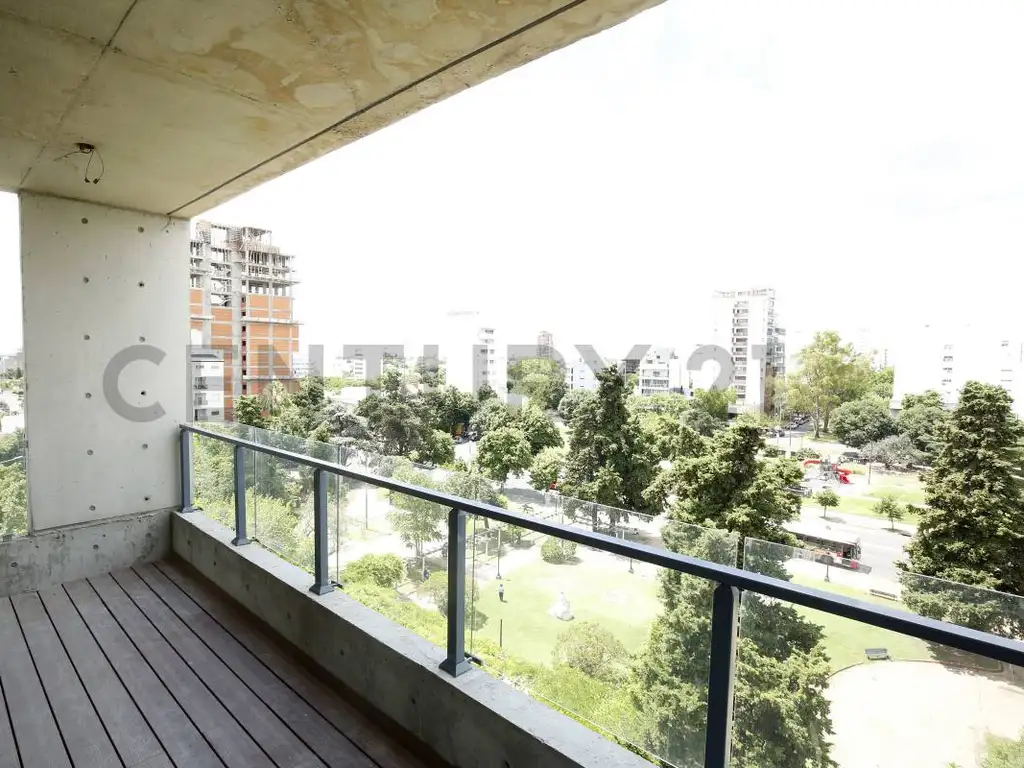Balcones Terraza: Todas las residencias poseen balcones terraza con las características constructivas de un piso en cada una de las residencias de Altos de Olazábal lo que permite contar con balcones en el frente y contrafrente de todas las unidades, pudiendo tocar el verde con las manos proyectando los espacios sociales al verde de la plaza Olazábal.