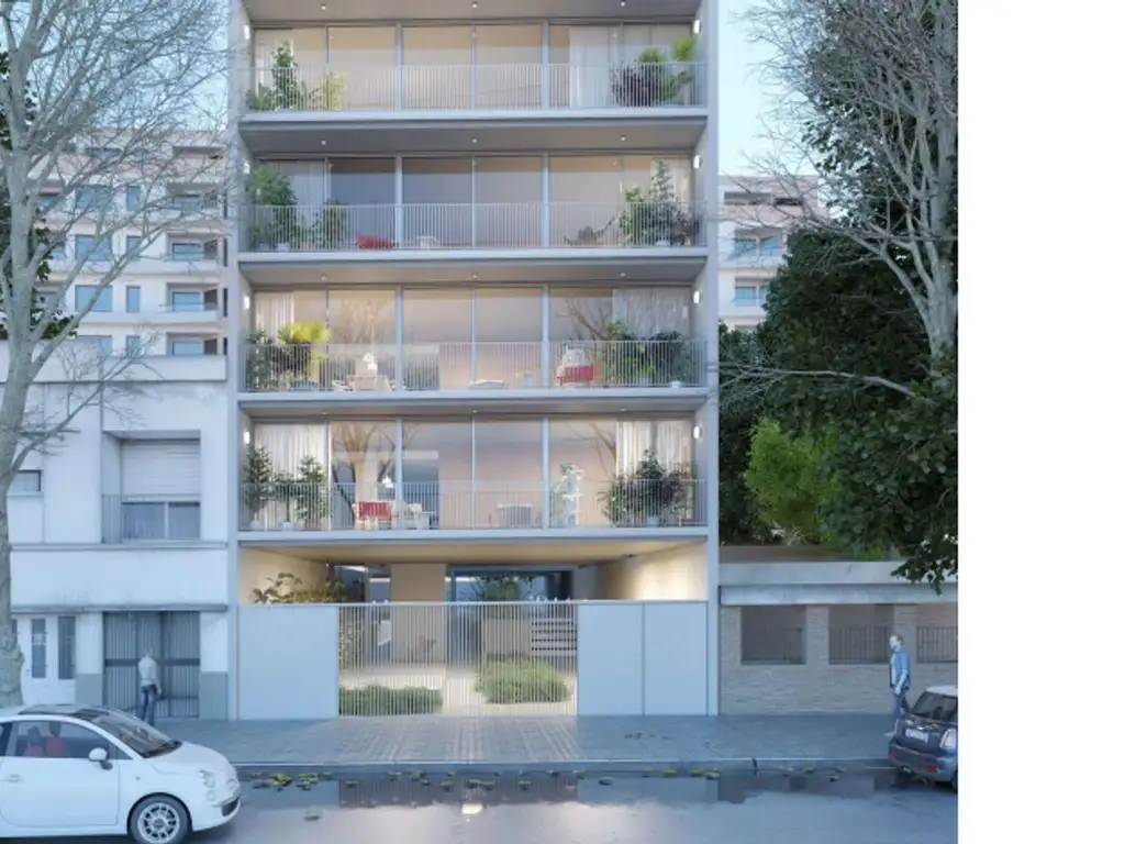 Se trata de un edificio de estilo moderno y de alta calidad constructiva, departamento de dos dormitorios de generosas medidas, ya que tienen 140 m2. Cuenta con balcón, que corre a todo el ancho de la unidad y que se integran con el interior, ya que tienen aberturas de piso a techo con carpintería de calidad y vidrio DVH.