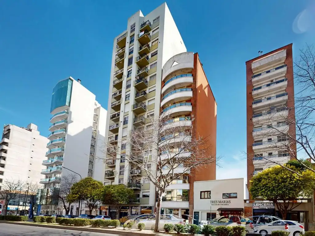 Este departamento ofrece un doble ingreso y una distribución funcional que maximiza la luminosidad y las vistas hacia la Avenida. Cuenta con un amplio living comedor, cocina equipada con muebles bajo y sobre mesada, comedor diario y lavadero cubierto con espacio de guardado.