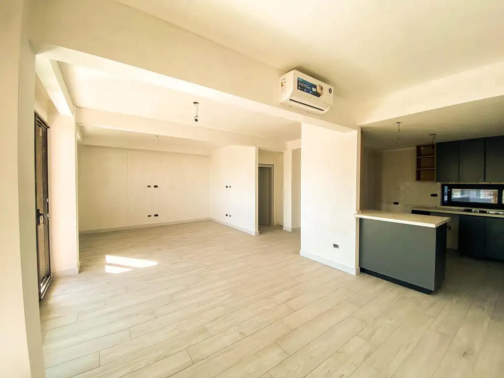 - Living comedor con carpintería metaliza corrediza, la cual permitirá la comunicación entre ambos espacios, revoques en yeso cerámico y pisos de porcelanato.