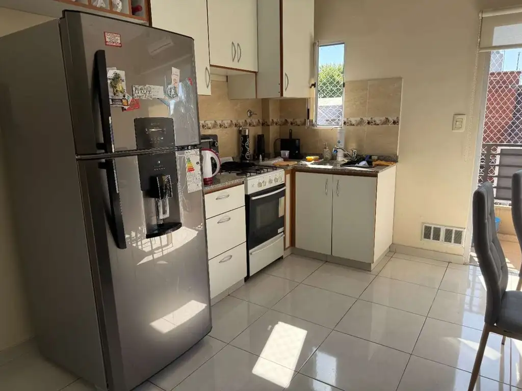 Al ingresar nos encontramos con un hall de entrada que nos conduce a un living comedor integrado, con aire acondicionado frio-calor, cocina con muebles bajo mesada, alacena y lavadero.