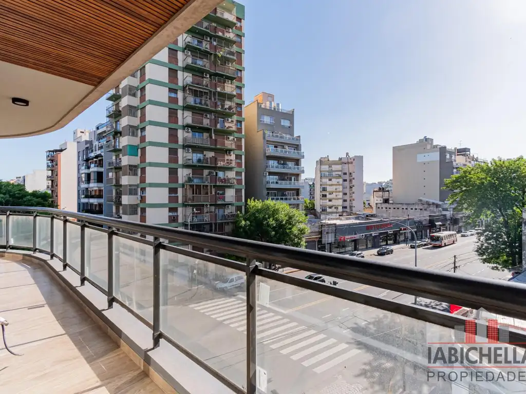 Espectacular 2 ambientes con balcón corrido y en todos los ambientes. Living comedor con cocina integrada.