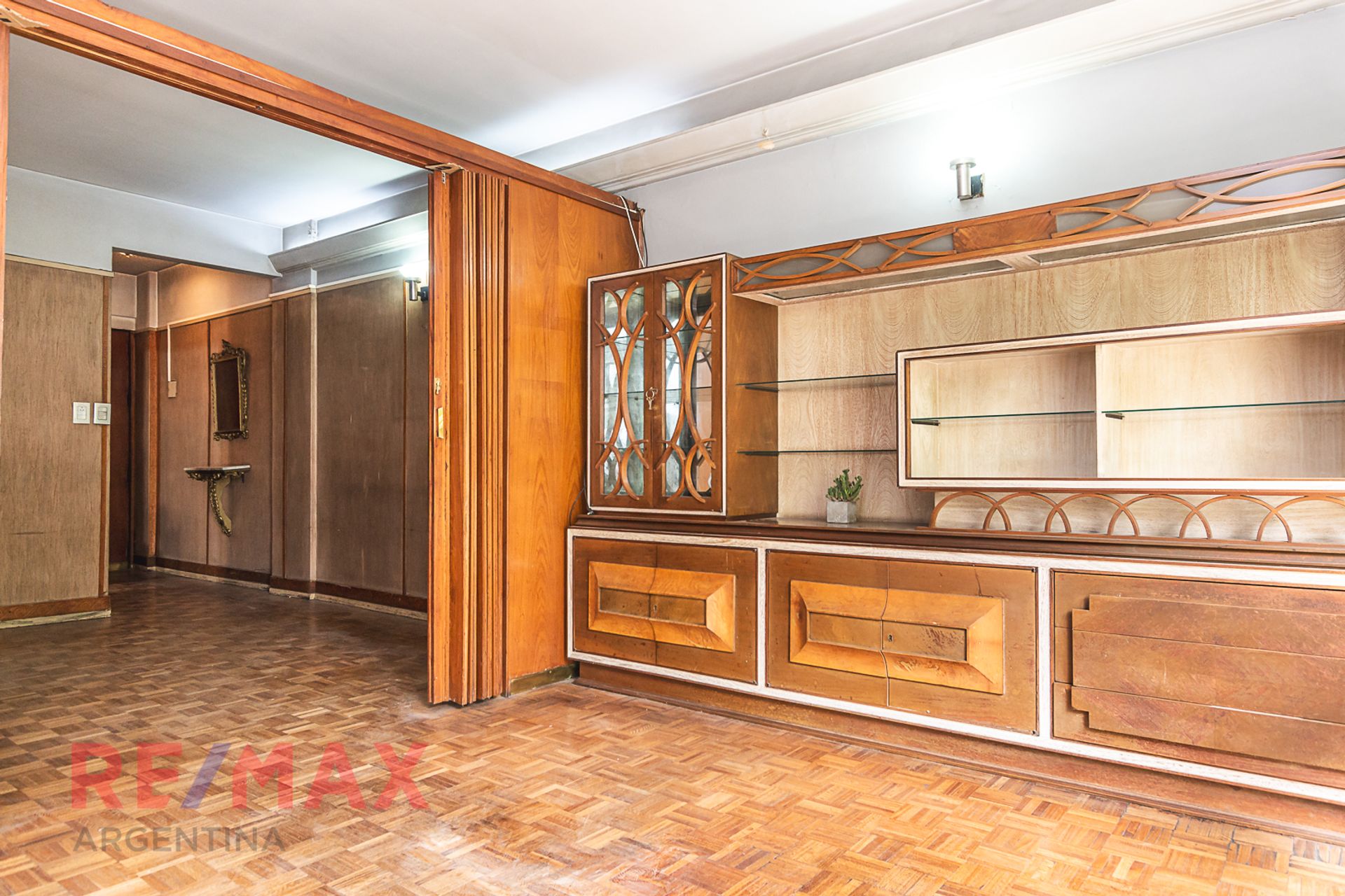 Al ingresar al departamento nos encontramos con un hall por el que se accede a un amplio living comedor de 6.5mts. de largo x 3.5mts de ancho, con salida directa al balcón contrafrente con vista abierta al pulmón de manzana (no tiene edificación que bloquee la vista ni la luz natural). Este ambiente, con piso parquet en muy buen estado, cuenta con una división de espacios que demarcan la zona de comedor y la zona de living, de acuerdo a su preferencia, y por sus dimensiones y distribución es apto, además de para un juego de living, para algún mueble que oficie de biblioteca, pequeña bodega o similar.