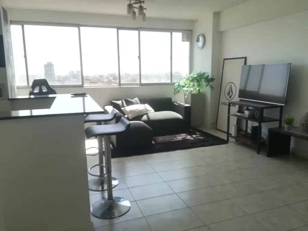La propiedad cuenta con un amplio y luminoso living-comedor de 8 x 5 y cocina integrada con muebles sobre y bajo mesada, hermosa y cómoda barra desayunadora y conexión de lavarropas. Dos dormitorios con placard empotrado de 3,50x3,50 con vista a AV. Rivadavia, baño completo con ducha. Amplio patio tipo terraza de uso común.