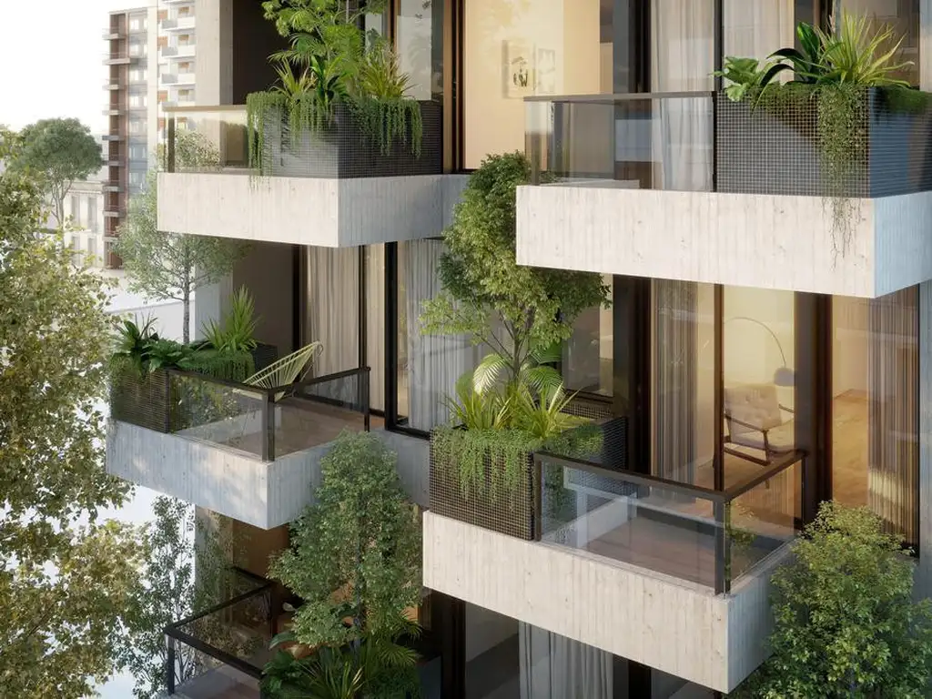 BOSQUE URBANO es un emprendimiento único en el corredor norte de la ciudad de Buenos Aires, en el barrio de Núñez. Se destaca por su fachada del frente con canteros propios en los balcones que se van desfasando y dan lugar al crecimiento de un árbol con riego propio. Las expansiones del contrafrente también poseen canteros y en los últimos pisos terrazas con jardín.