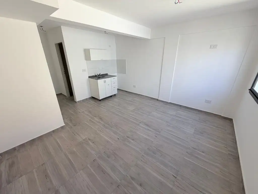Living cocina comedor, con muebles bajo mesada. El departamento se entrega con el termotanque eléctrico a instalar, y con horno eléctrico.