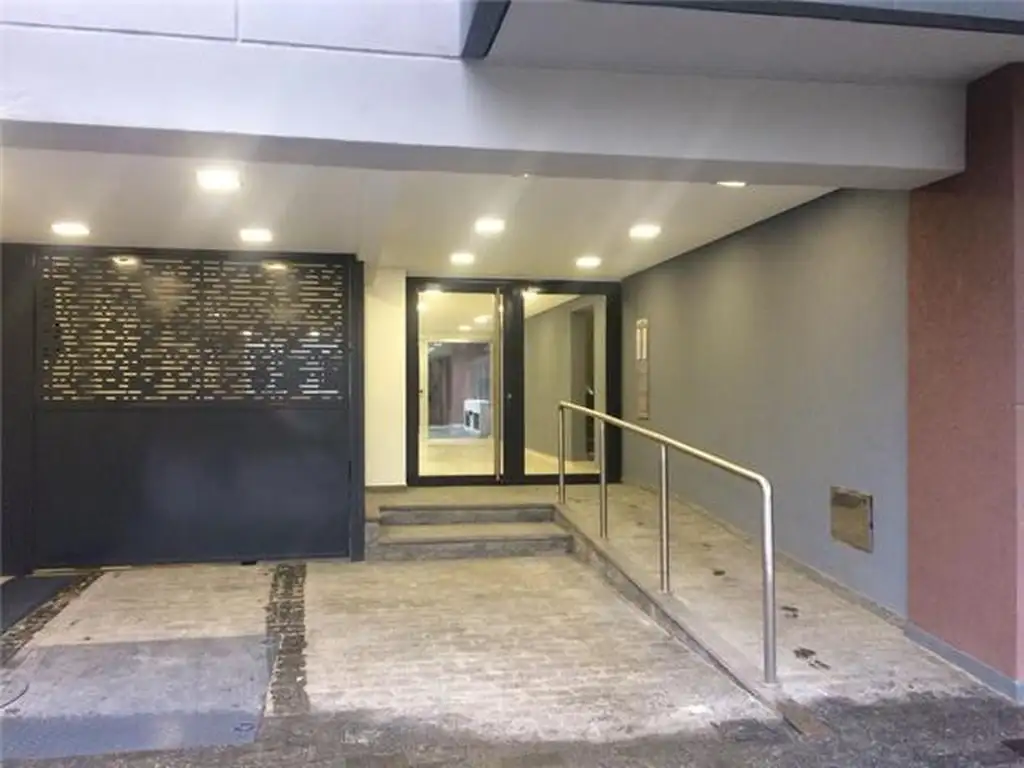 Hall de acceso con cristal templado o laminado, revestimientos tipo texturados con iluminación por spots