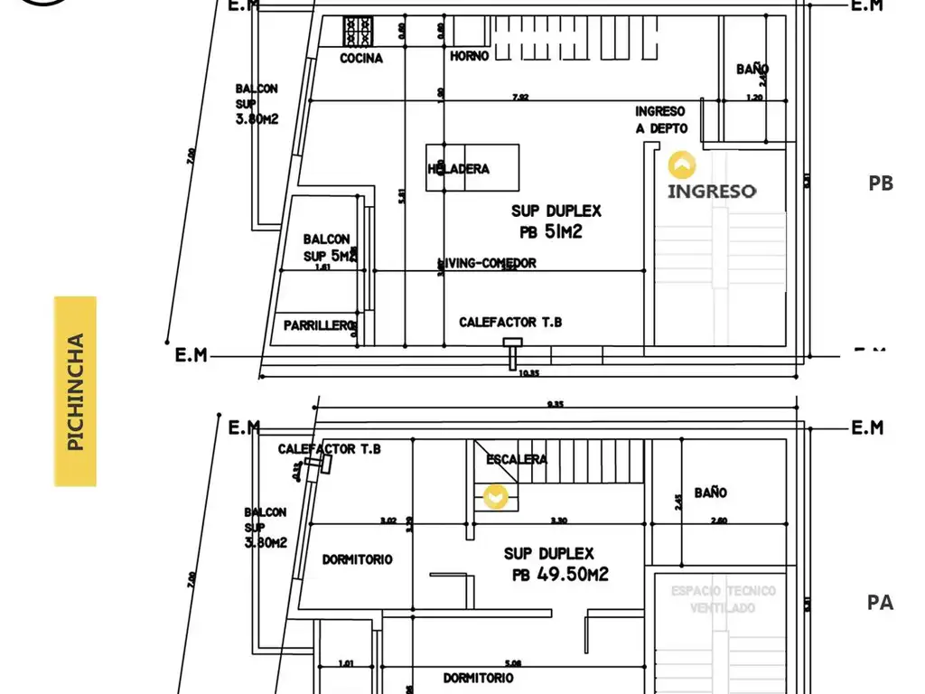 Departamento 2 dormitorios dispuesto en dúplex. Cuenta con un amplio living comedor con salida a un balcón al frente con parrillero. La cocina está integrada al estar comedor, generando un espacio cómodo y contemporáneo. Cuenta con amplio espacio de guardado, horno y anafe, purificador, bacha simple con grifería, espacio para microondas. Dispone de dos dormitorios con placares empotrados y un baño completo con detalles modernos. La luz natural y la ventilación cruzada se destacan en cada ambiente, brindando una sensación de amplitud y calidez.