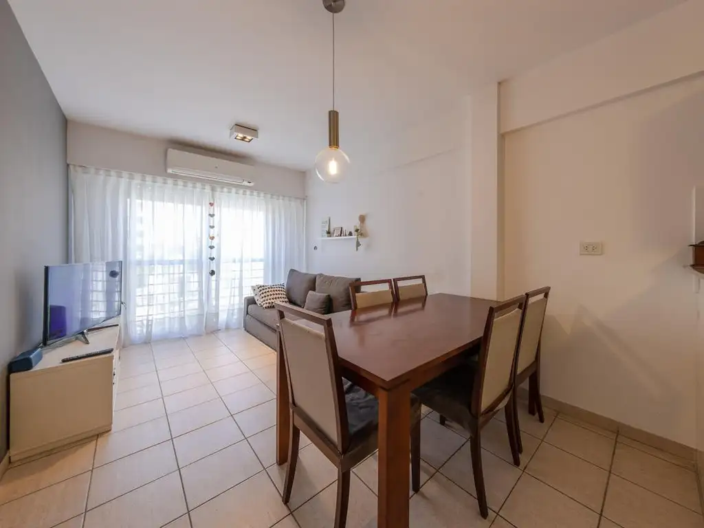 Propiedad compuesta por living-comedor con vista despejada. Cocina integrada con barra desayunadora, mesada de mármol Mara, muebles bajo mesada y alacenas.