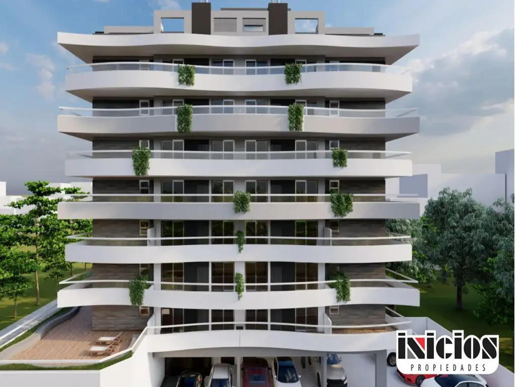 Edificio de planta baja y 9 pisos, con 35 departamentos, dos locales comerciales y 17 cocheras.