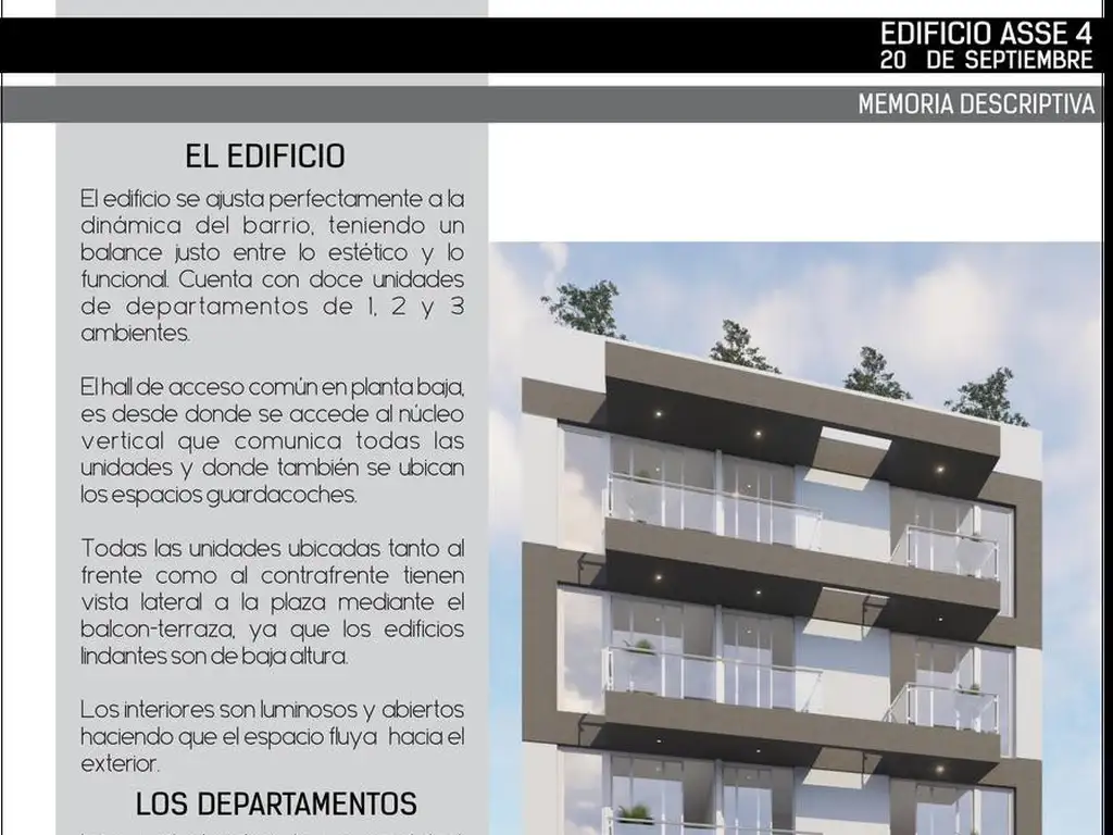 El edificio se ajusta perfectamente a la dinámica del barrio, teniendo un balance justo entre lo estético y lo funcional. Cuenta con doce unidades de departamentos de 1, 2 y 3 ambientes.