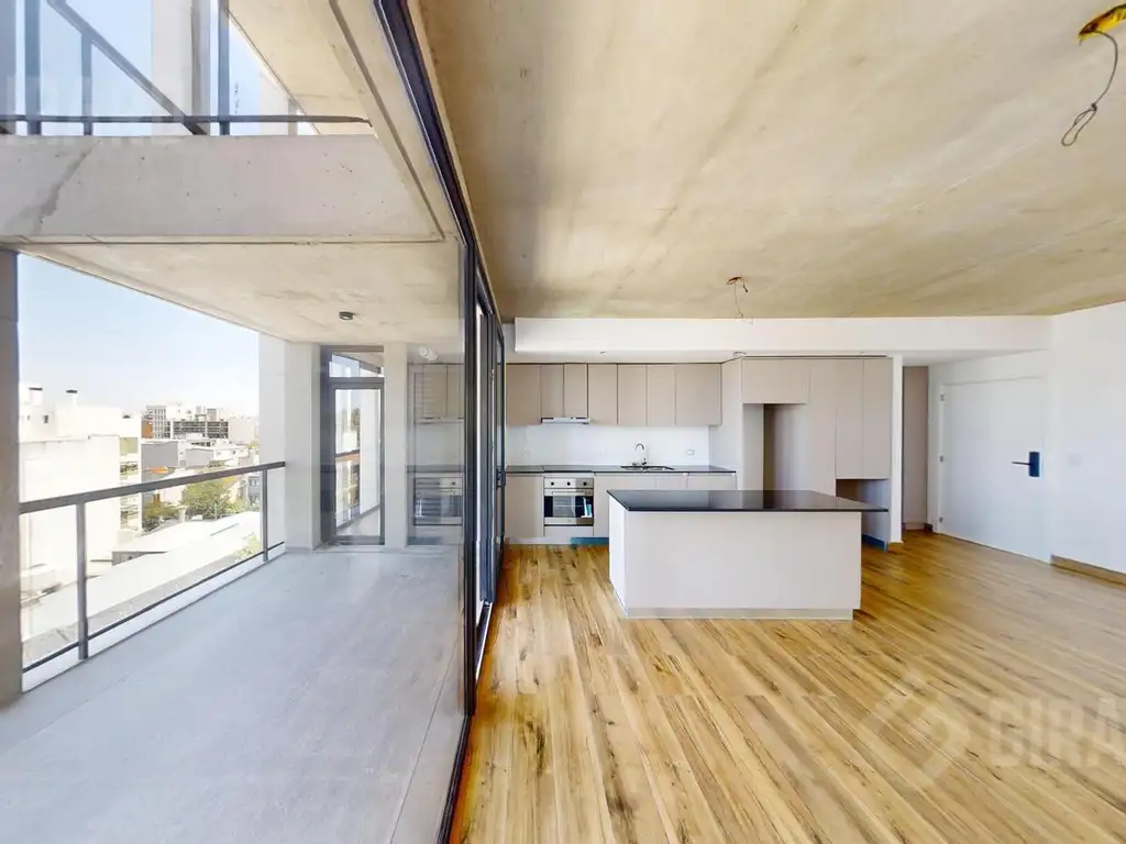 Moderno departamento de 2 ambientes, tipo semipiso, con 70 a 75 m2 y balcón saliente al frente o contrafrente. Cuenta con living comedor con cocina integrada y salida al balcón, dormitorio en suite y toilette de recepción.
