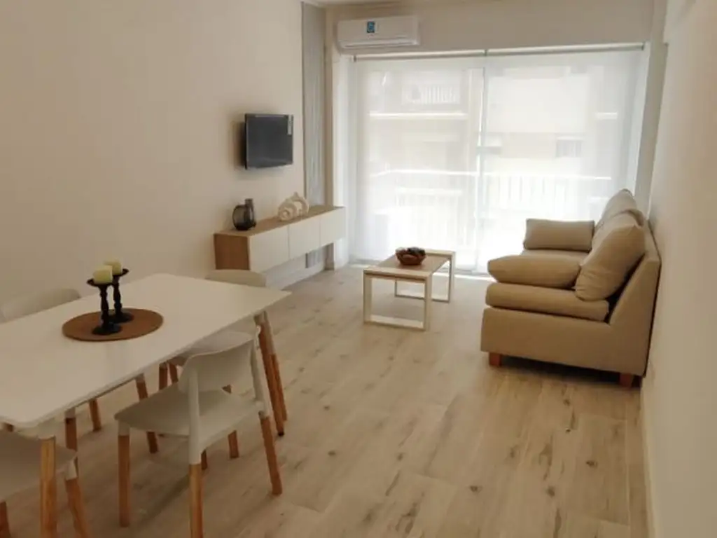 Hall de Entrada , cocina comedor diario muy amplia, conexión a gas para parrilla , dependencia de servicio , toilette , Dormitorio con calefacción x tiro balanceado , baño completo , living comedor muy amplio a la calle con balcón , split frio/calor, 60 M2 , obra de gas realizada en edificio y depto