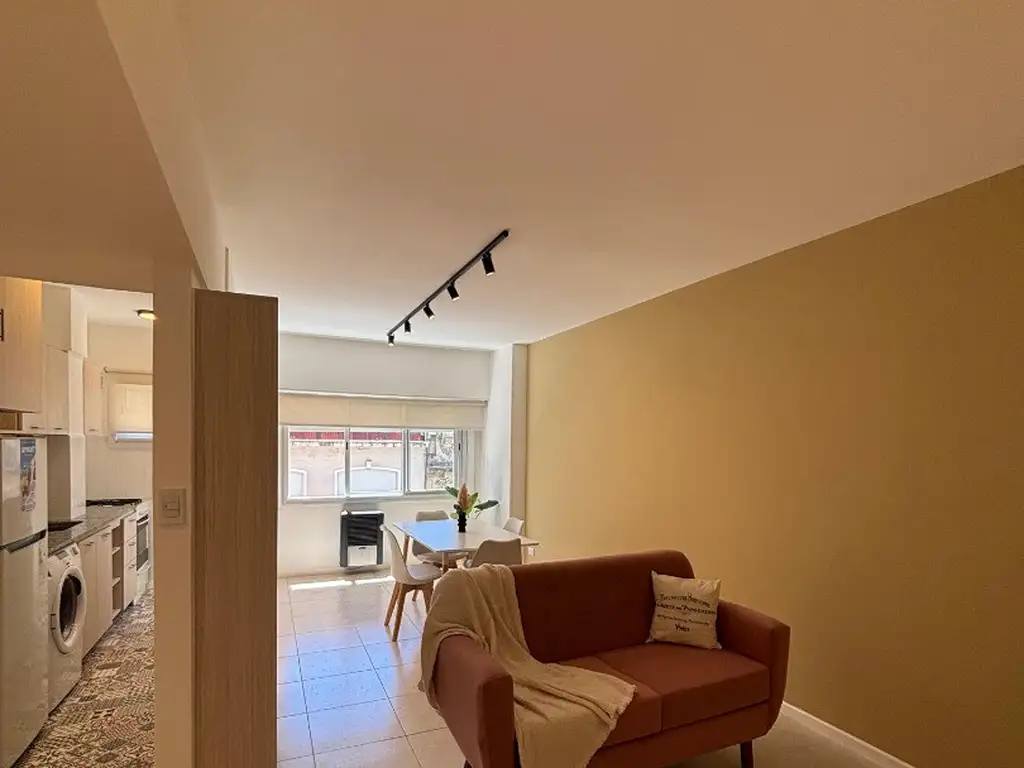 La propiedad cuenta de living comedor a la calle con cocina integrada con barra desayunadora y espacio para lavarropas, habitación muy luminosa y con placard, baño completo. El depto se encuentra totalmente reciclado, con excelentes materiales y muy buen gusto en la decoración. Se entrega con muebles a estrenar.