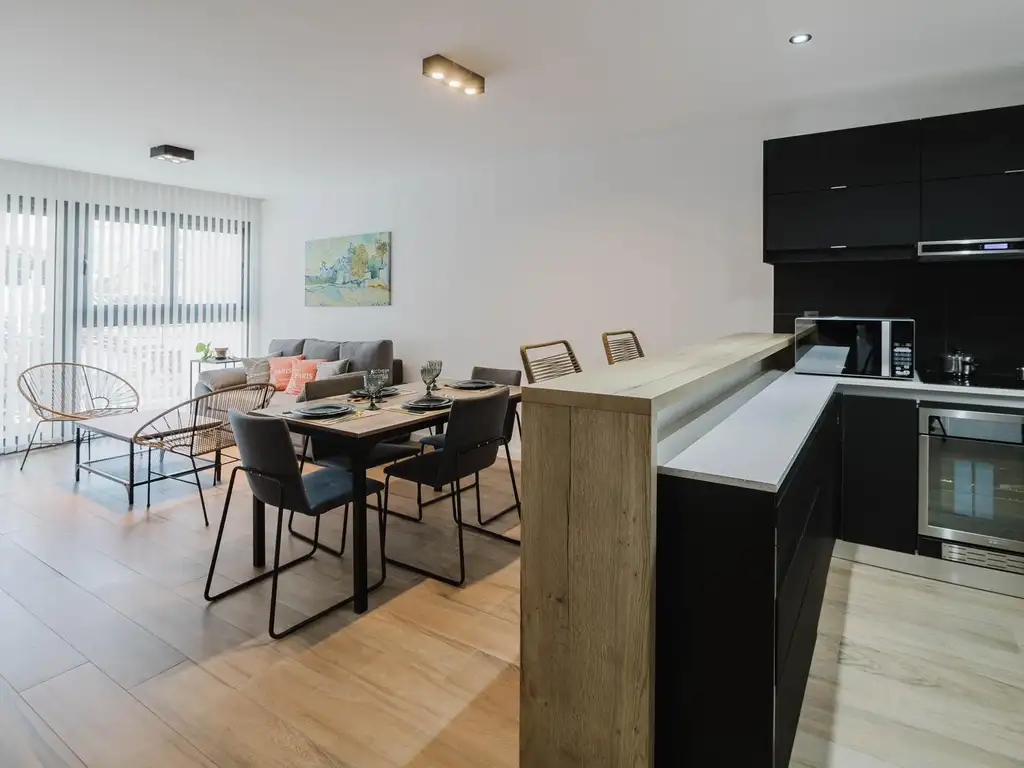 Cocina equipada con mesadas de cuarzo, muebles Egger y horno/anafe eléctricos de origen italiano