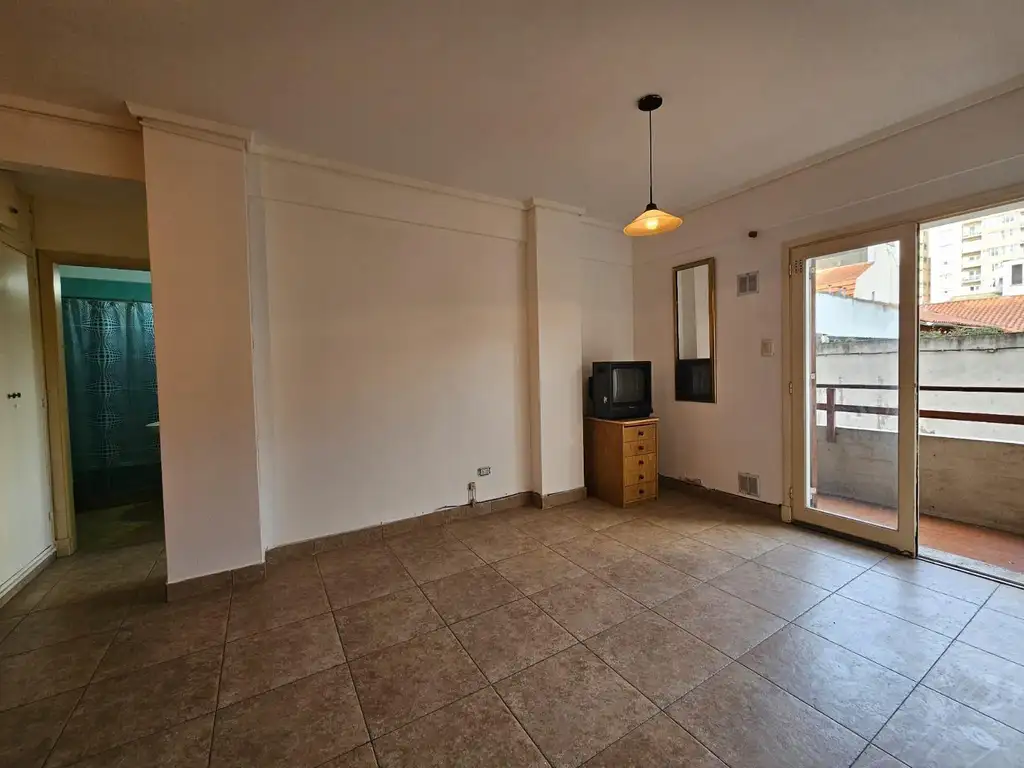 Al ingresar al departamento nos encontramos con un amplio living comedor, una cocina separada todo en estado original, la cocina también es amplia ya que ingresa una mesa y sillas. En el living contamos con un balcón saliente con vista al ingreso a la cochera. Luego al continuar contamos con un baño completo con bañera y un dormitorio con placard empotrado y balcón francés.