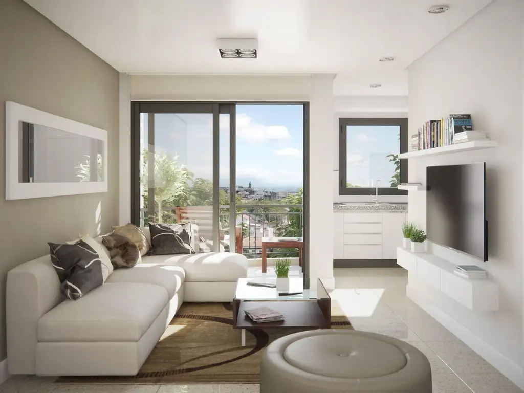 Amplio living comedor con balcón al frente, cocina integrada, baño completo y dormitorio con placard al contrafrente.