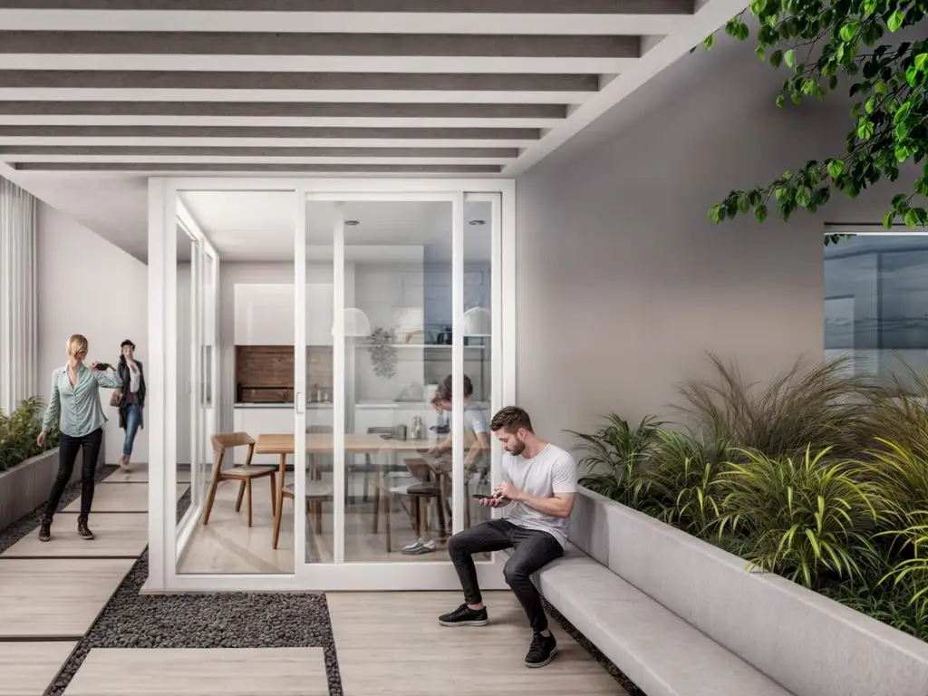 Las especificaciones, información comercial, planos, medidas, superficies, espacios, distribuciones, imágenes y descripciones representan material preliminar al sólo efecto ilustrativo e informativo de las características del inmueble pudiendo estar sujeta a errores y cambios. Son exclusivamente de carácter informativo y estimativas, no generando obligación alguna a las partes, estando sujetas a las que en defnitiva surjan de la construcción, las reglamentaciones municipales vigentes y de los planos de la mensura particular y división de Propiedad Horizontal ley 13.512. Todas las imágenes y maquetas presentadas en el material comercial son perspectivas artísticas del emprendimiento y no necesariamente una descripción exacta de la propiedad. El mobiliario y la decoración han sido incluidos a título ilustrativo y no contractual.