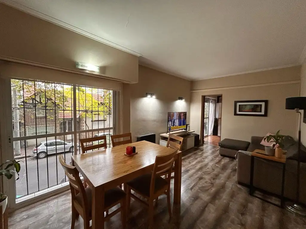 Al entrar nos encontramos con un living comedor super luminoso gracias a sus gran ventanales, cuenta con balcón francés; seguido por la cocina, completamente reciclada, con ventilación natural e instalación de gas hecha.