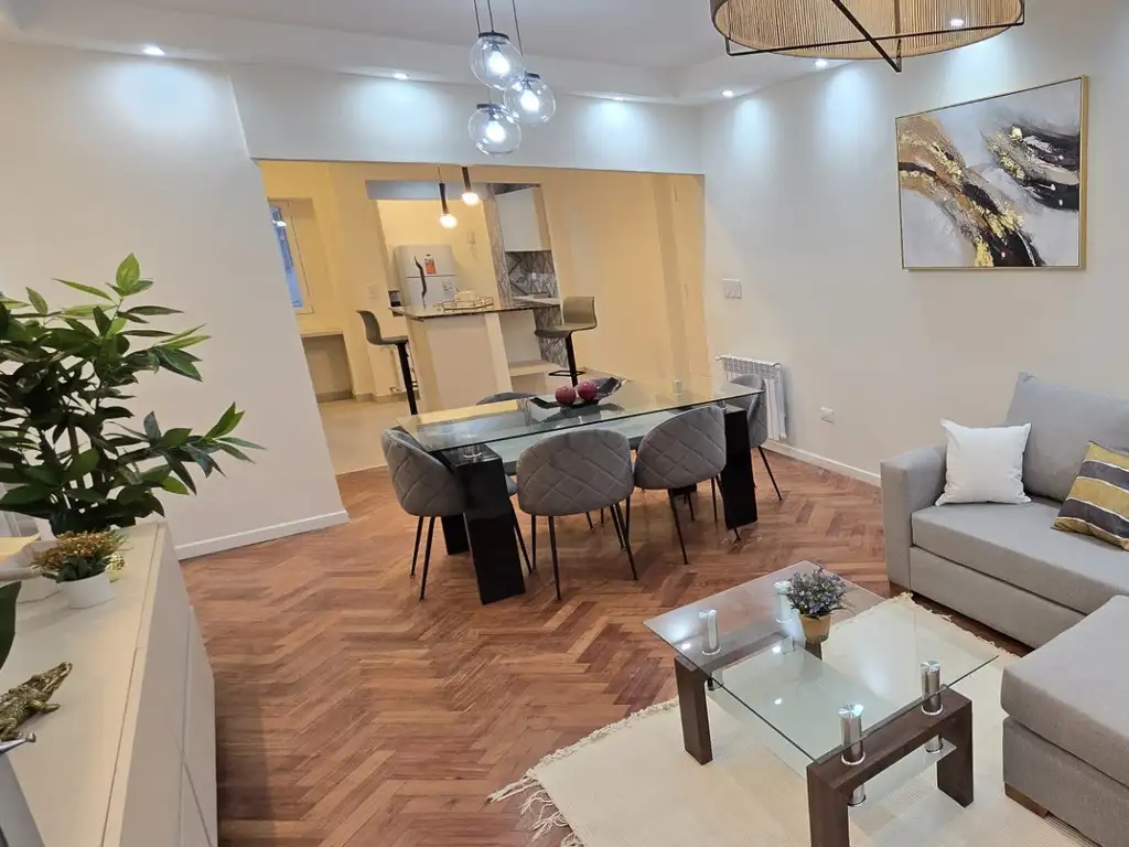 La propiedad cuenta con living comedor con balcón a la calle, cocina comedor con isla y lavadero interado, 2 dormitorios, baño completo, toilete y escritorio.Reciclad: aberturas DVH, caldera y radiadores. Se entrega amoblado y decorado. Opcional cochera a 50metros por U$S 19.900.
