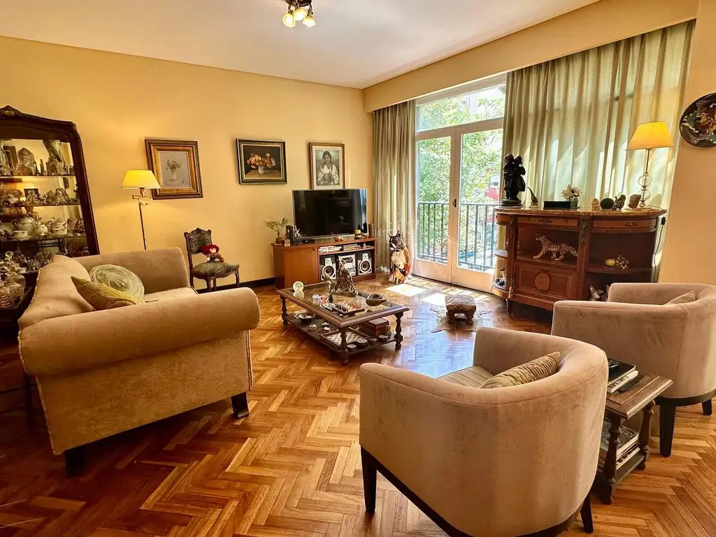 Living/comedor al frente, de 7 m por 4 m y 3 m por 5 m, con balcón francés, vereda de sol.