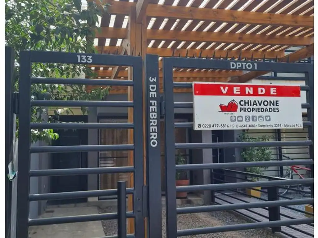 Posee, en planta baja living-comedor y cocina con desayunador de melamina, mueble bajo mesada y alacena, termotanque, toilette, entrada para vehículo y patio interno. En plata alta 2 dormitorios, baño completo y pequeño balcón al frente.