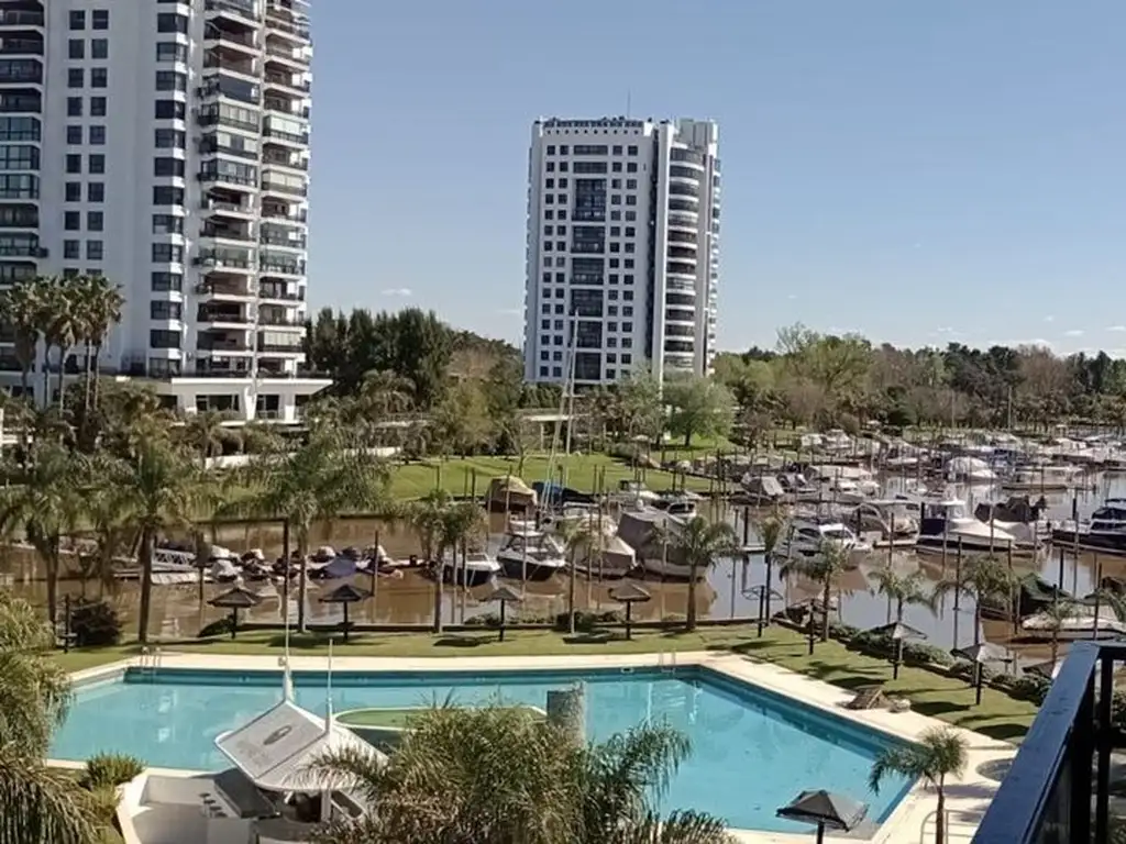 Compuesta por hall de acceso, importante living–comedor (11,00 metros por 4,20 y 3,80); con expansión a un balcón terraza (5.40 x 4,20/ 2.30 metros) con una parrilla completa accionable y mueble bajo mesada en aluminio anodizado, inmejorables visuales al rio, a las amarras de embarcaciones, pileta, juegos de niños y confiterías.