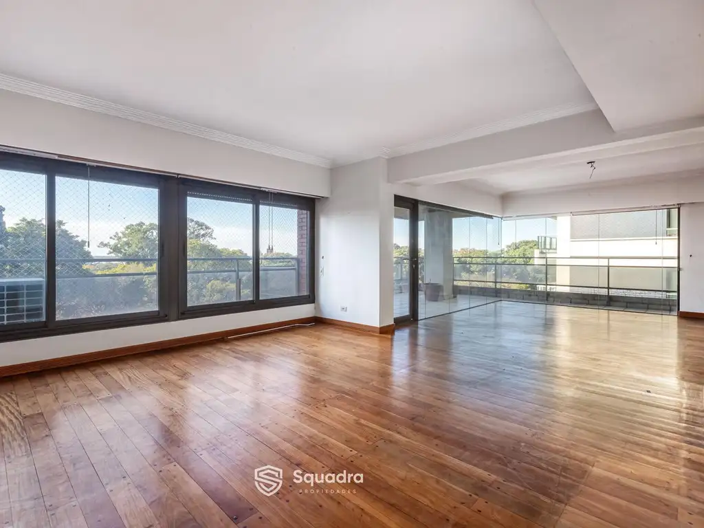 Descripción: El departamento tiene doble ingreso, el principal al living continuado por el comedor, ambos ambientes continuados por balcón al frente. Comedor diario separado, cocina independiente con doble mesada y parrillero, cuarto de estudio, toilette y lavadero. Pasillo distribuidor a tres dormitorios con placard y dos baños que asisten a los dormitorios más un dormitorio en suite con hidromasaje y vestidor doble. Todos los dormitorios tienen salida al balcón.