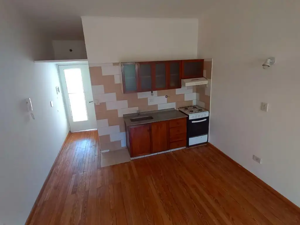 Ambiente amplio y luminoso con cocina equipada e integrada. Baño completo con bañera y ventilación natural.