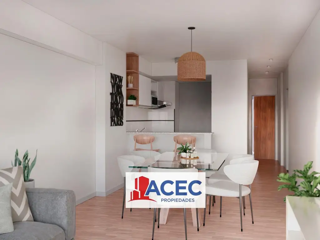 Ambiente único donde se desarrolla el espacio uso de living - comedor con cocina semi -integrada con barra desayunador, totalmente amoblada y equipada