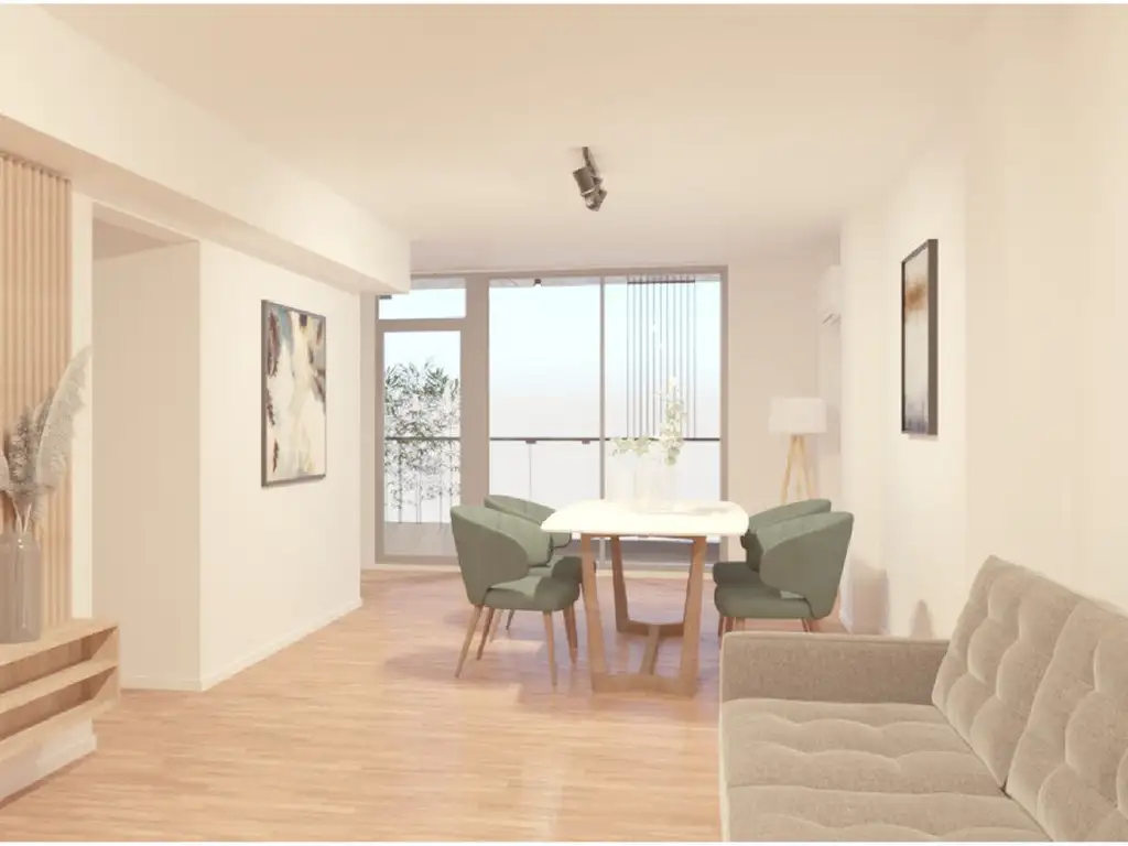 La unidad está compuesta de cocina comedor semi integrada con salida a balcón corrido. Baño completo, 2 Dormitorios (uno en suite) ambos con salida al balcón.